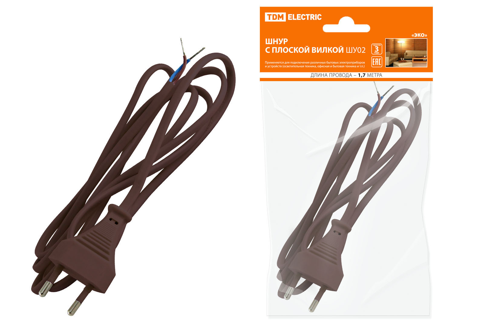 Шнур с вилкой TDM 1,7м коричневый (80)