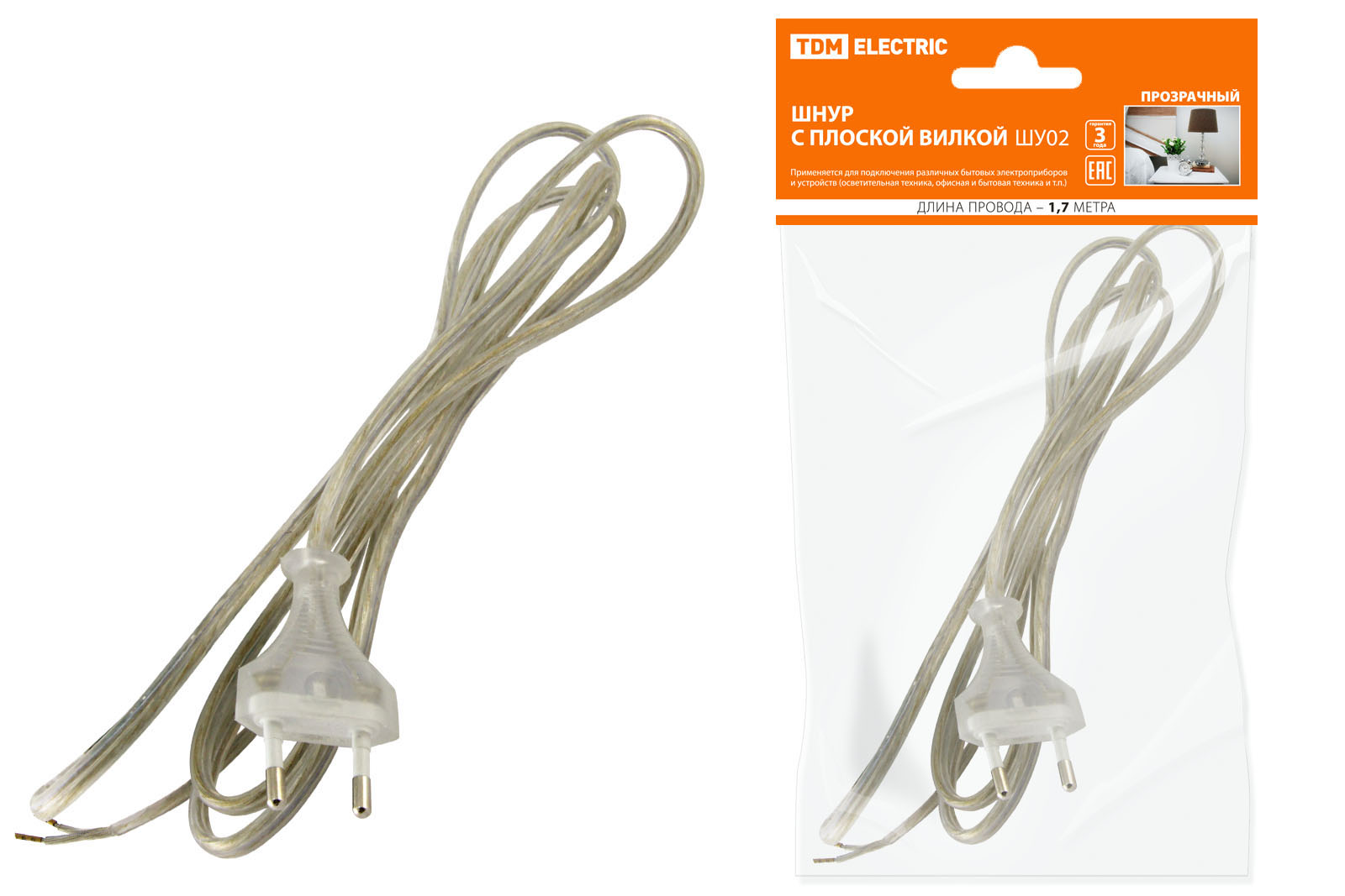 Шнур с вилкой TDM 1,7м прозрачный (80)