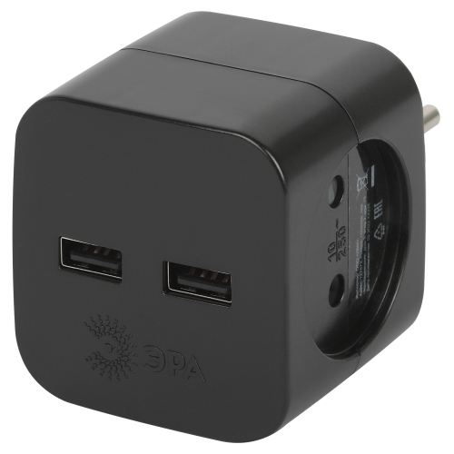Двойник Эра 10А б/з 2xUSB 2400mA черный