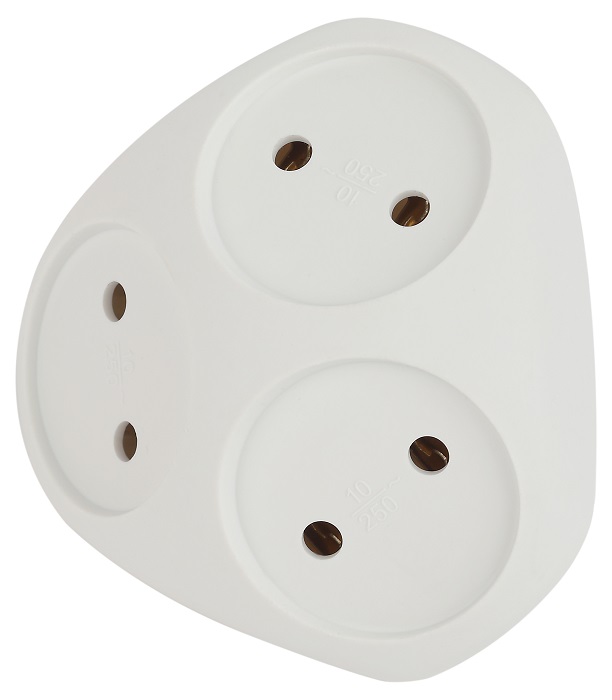 Сетевой разветвитель (тройник) ЭРА. Максимальная мощность - 10А/2200 Вт, материал корпуса - полипропилен (пластик премиум сегмента).