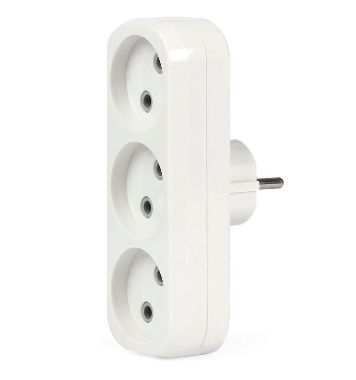 Тройник Smartbuy 10А б/з плоский белый (100)