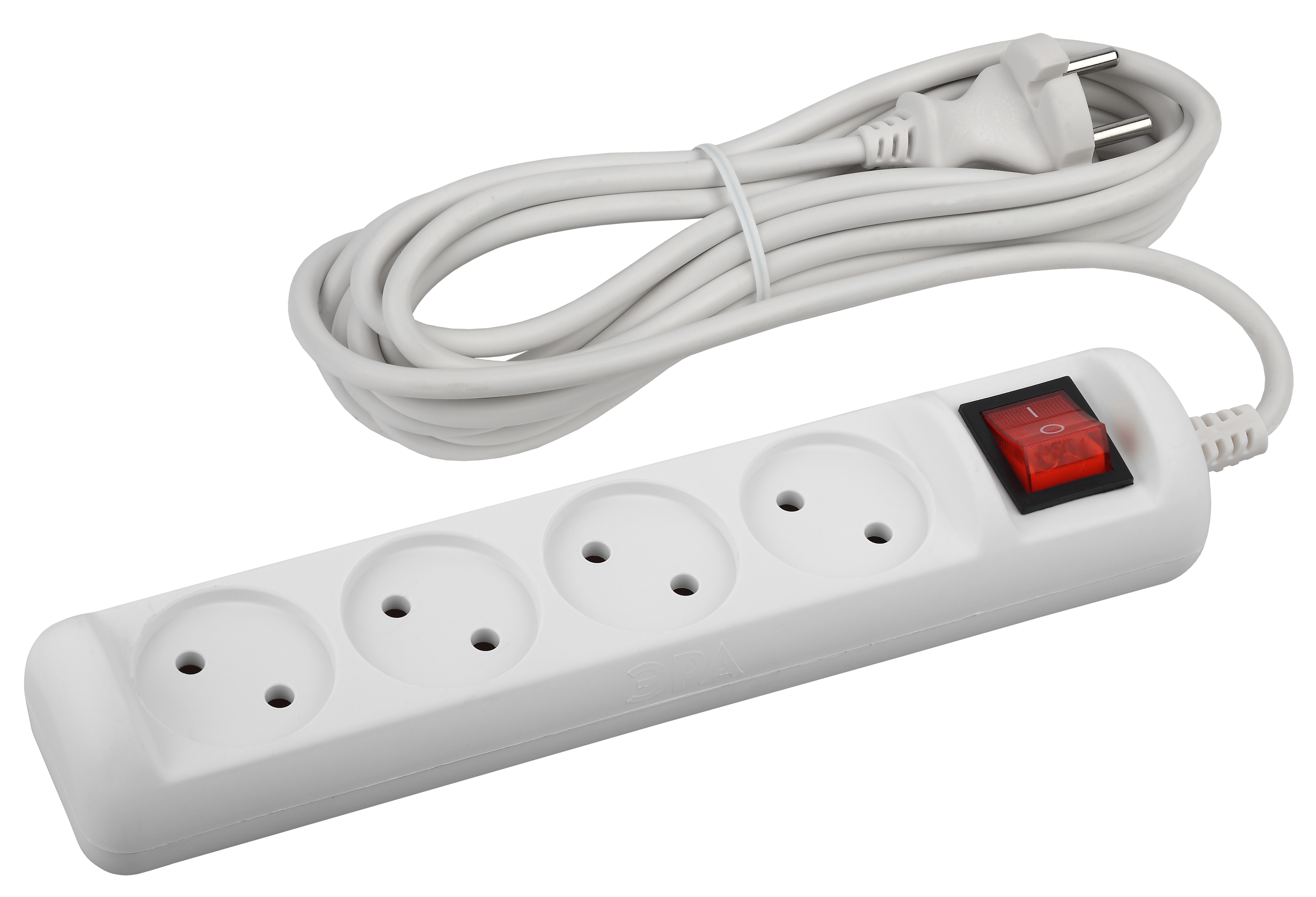 U-4s-5m-2x1 ЭРА Удлин-ль ЭРА без заземл, с выкл, 4гн, 5м, ПВС, 2х1мм2, 10А (20/720)