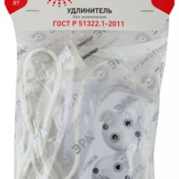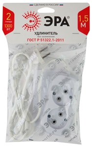 Удлинитель 2гнезда 1.5м без заземления ПВС 1300Вт 2x0.75мм² Эра ГОСТ (20)