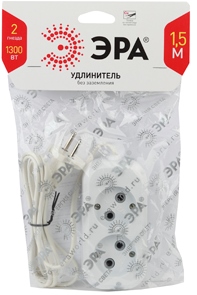 Удлинитель 2гнезда 1.5м без заземления ШВВП 1300Вт 2x0.75мм² Эра (20)