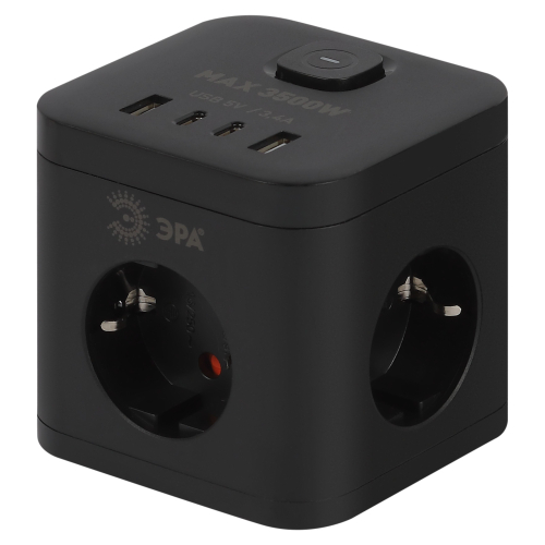 Удлинитель 3гнезда 1.5м с/з выключатель ПВС 3500Вт 3x0.75мм² 4xUSB (2xA+2xC) черный куб Эра