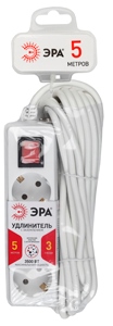 Удлинитель электрический Эра U-3es-5m-3x1 с заземлением, с выключателем, ПВС, 3x1мм2, 3 розетки, 5 м. Рассчитан на максимальную мощность 16А/3500 Вт. Удлинитель Эра станет Вашим надежным помощником, если Ваши любимые электроприборы находятся далеко от розеток. Провод в удлинителях Эра сделан из 100% меди, что делает его абсолютно пожаробезопасным. Корпус выполнен из ударопрочного и негорючего пластика (полипропилен). В моделях с заземлением у вилки есть кольцо для удобного извлечения из розетки. Модель удлинителя на 16А позволяет подключить мощные бытовые приборы общей нагрузкой до 3500Вт. Не бойтесь включить чайник, обогреватель, микроволновку или другие электроприборы. Толстый провод удлинителя Эра гарантирует полную безопасность. Дизайн удлинителя разработан в России командой Эра Style.