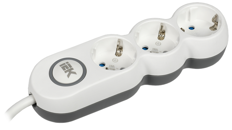 Удлинитель 3гнезда 5м заземление выключатель 3500Вт ПВС 3х1,5мм² IEK UNO У03В (8)