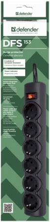Сетевой фильтр Defender DFS-153 6 гнёзд 3м 2200Вт чёрный (1/30)