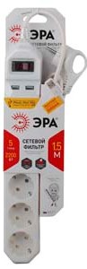 Сетевой фильтр Эра USF 5гнёзд+2гнезда USB 1.5м 3x0.75мм² 2200Вт белый