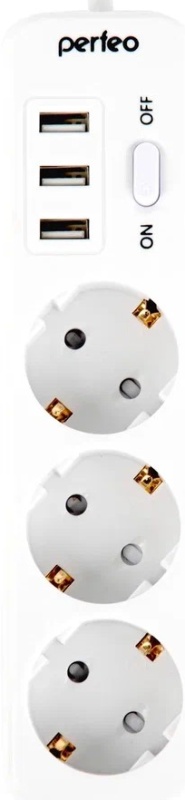 Сетевой фильтр Perfeo Power STREAM 3 гнезда 4.0м 2500Вт двойная защита белый 3xUSB 2.4A (1/30)