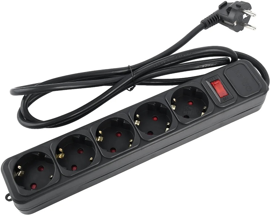 Сетевой фильтр Perfeo REAL POWER 5 гнёзд, 1,8 метра, 3х1,5мм2, 16A, 3500Вт, тройная защита, чёрный (1/30)