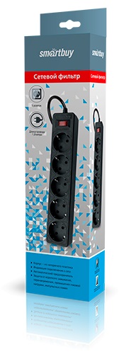 Сетевой фильтр SmartBuy One 5гнёзд 1.8м 2200Вт черный (45)