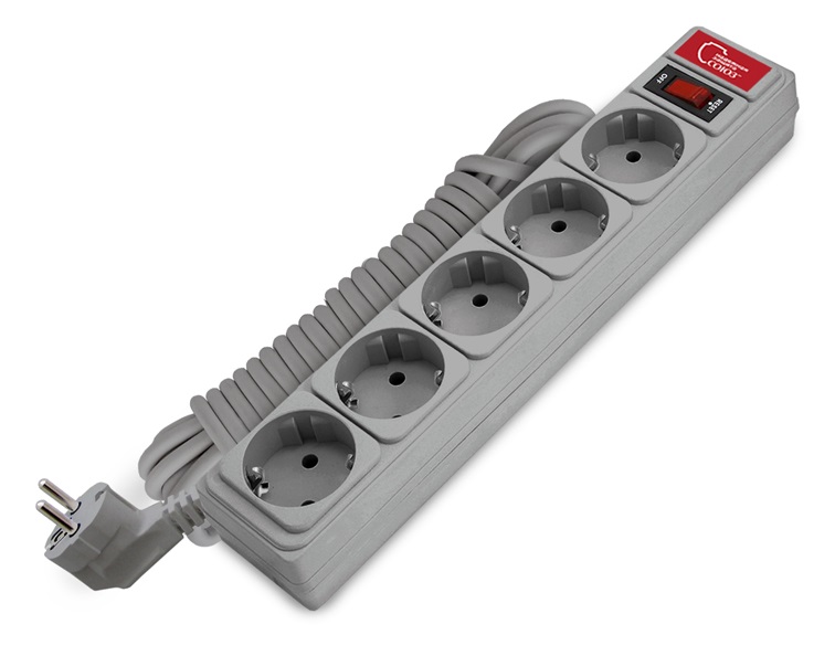 Сетевой фильтр Союз 5гнёзд 5м ПВС 2200Вт 3x0.75мм² серый (25)