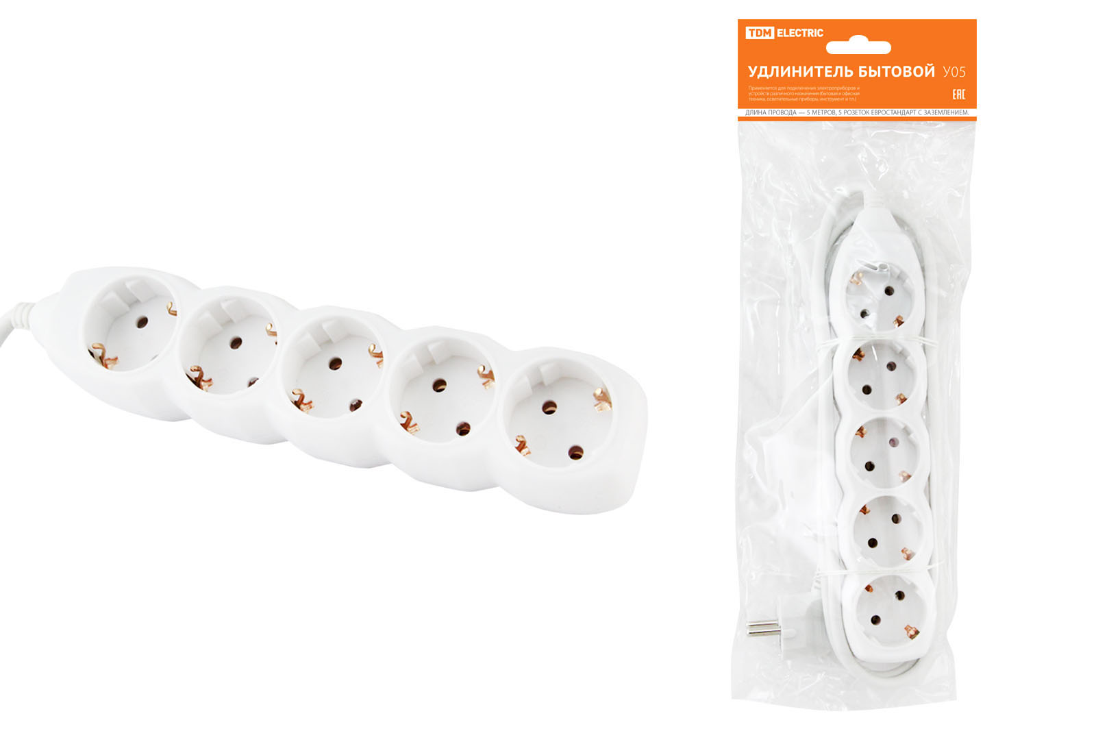 Удлинитель 5гнёзд 5м с заземлением ПВС 3500Вт 3x1мм² TDM (20)