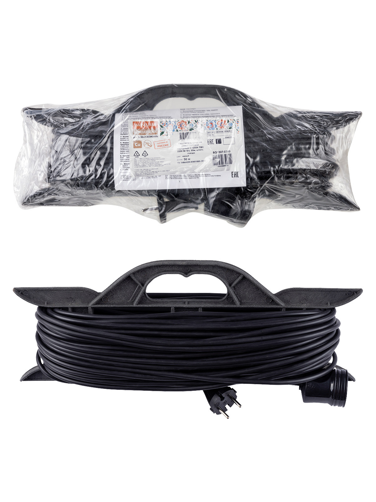 Удлинитель-рамка 1гн 50м без заземления ПВС 2200Вт 2x1мм² TDM Народный (5)