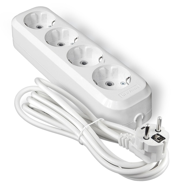 Удлинитель 4гнезда 5м с заземлением ПВС 2200Вт 3x0.75мм² Универсал У10-555 (25)