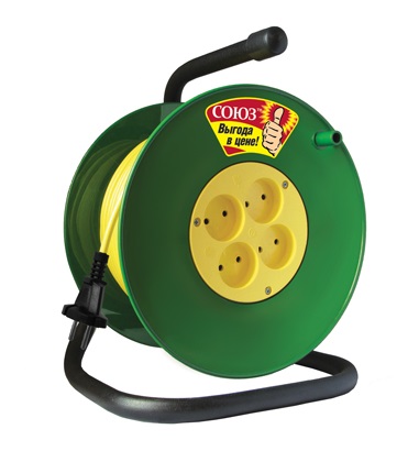 Удлинитель-катушка 4гнезда 40м без заземления ПВС 3500Вт 2x2.5мм² Союз
