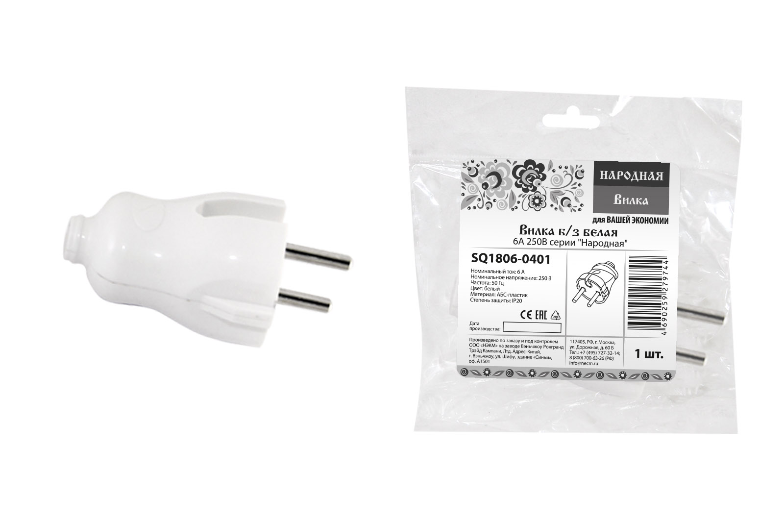Вилка TDM прямая без заземления белая 6А 250В Народная (65)