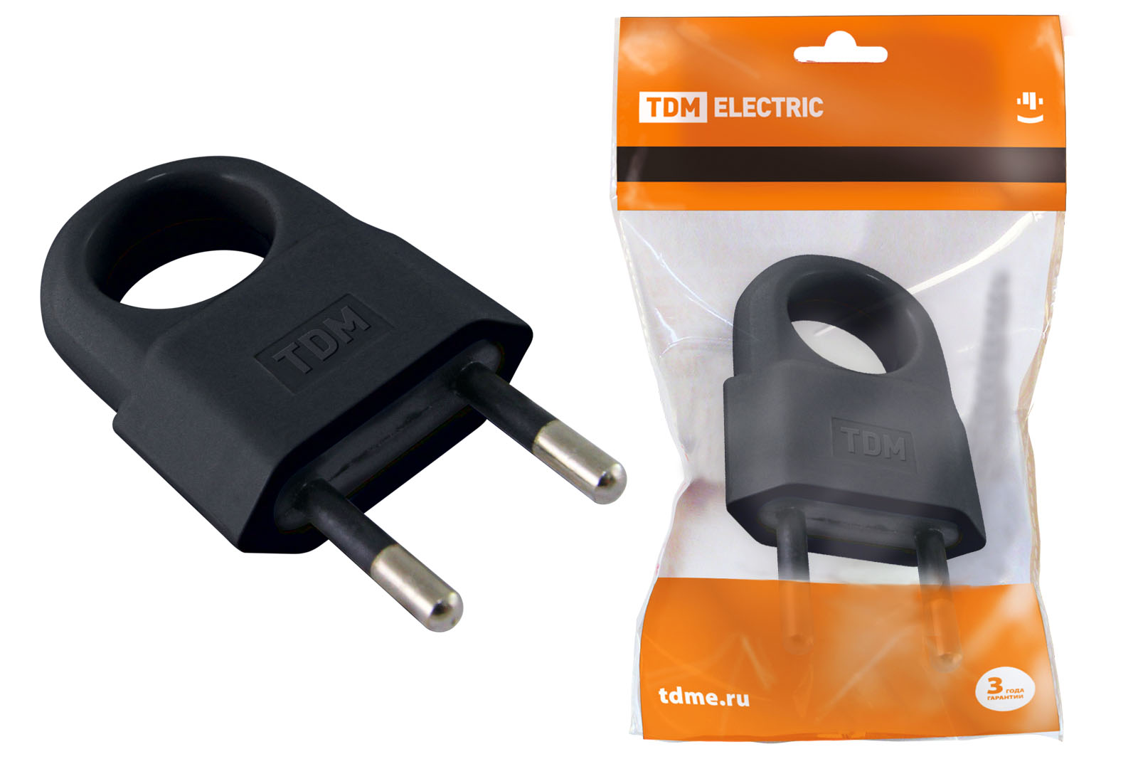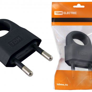 Вилка TDM прямая без заземления кольцо черная 10А (50)