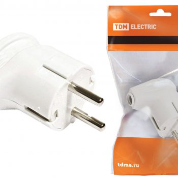 Вилка TDM угловая c/з белая 16А (30)