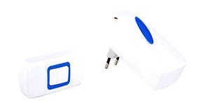 Беспроводной дверной звонок, работающий от сети. Встроенная вилка упрощает использование, позволяя за секунду подключать устройство в любом месте, где есть розетка. И переносить динамик из комнаты в комнату. Кнопка работает от батарейки А23, которая поставляется в комплекте. На выбор 6 качественных мелодий, их можно менять по настроению. Радиус действия звонка 100 метров. Компактный размер, приятная бело-синяя цветовая гамма. Аккуратная блистерная упаковка делает этот звонок отличным вариантом подарка на новоселье и другие праздники!