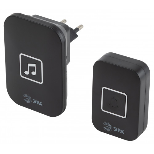Звонок беспроводной ЭРА С97 220В кнопка А23 черный 60 мелодий 70м