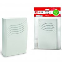 Звонок беспроводной ЗБ-10 два динамика 32 мелодии 120м с кнопкой IP44 бело-серый IN HOME