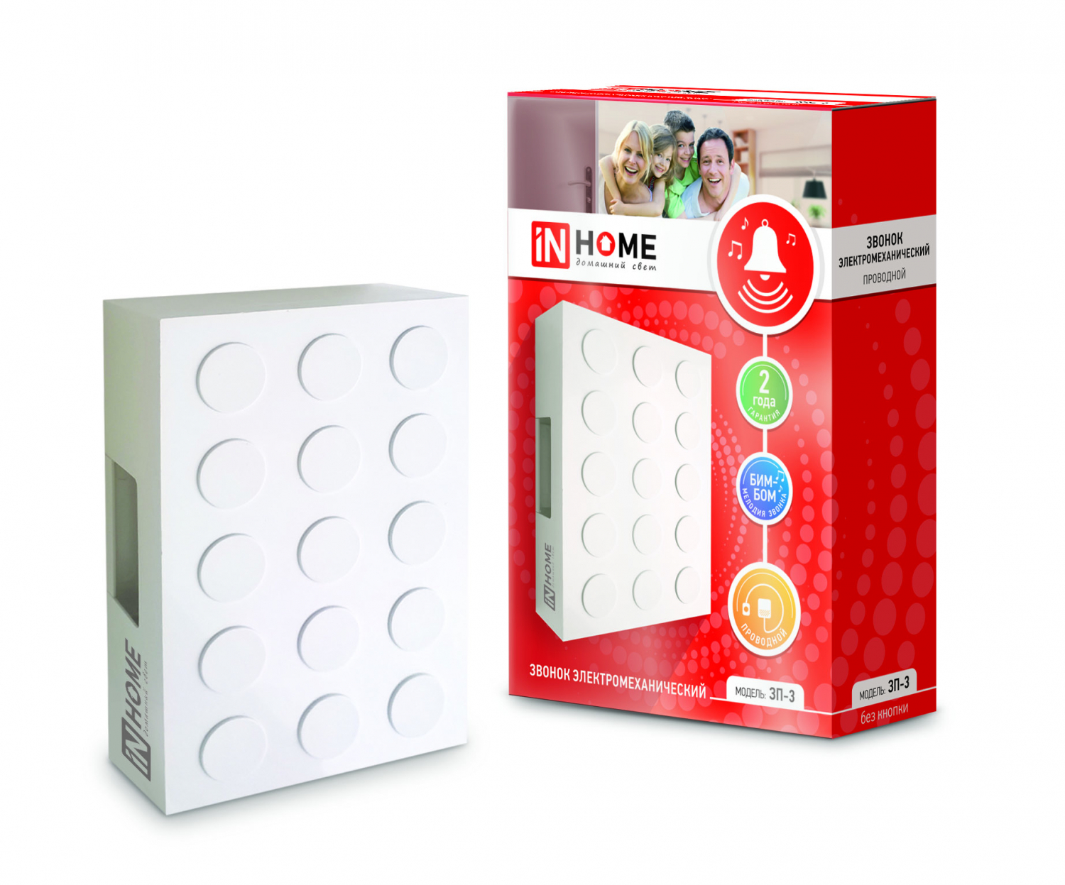 Звонок проводной InHome ЗП-3 Бим-Бом белый (100)