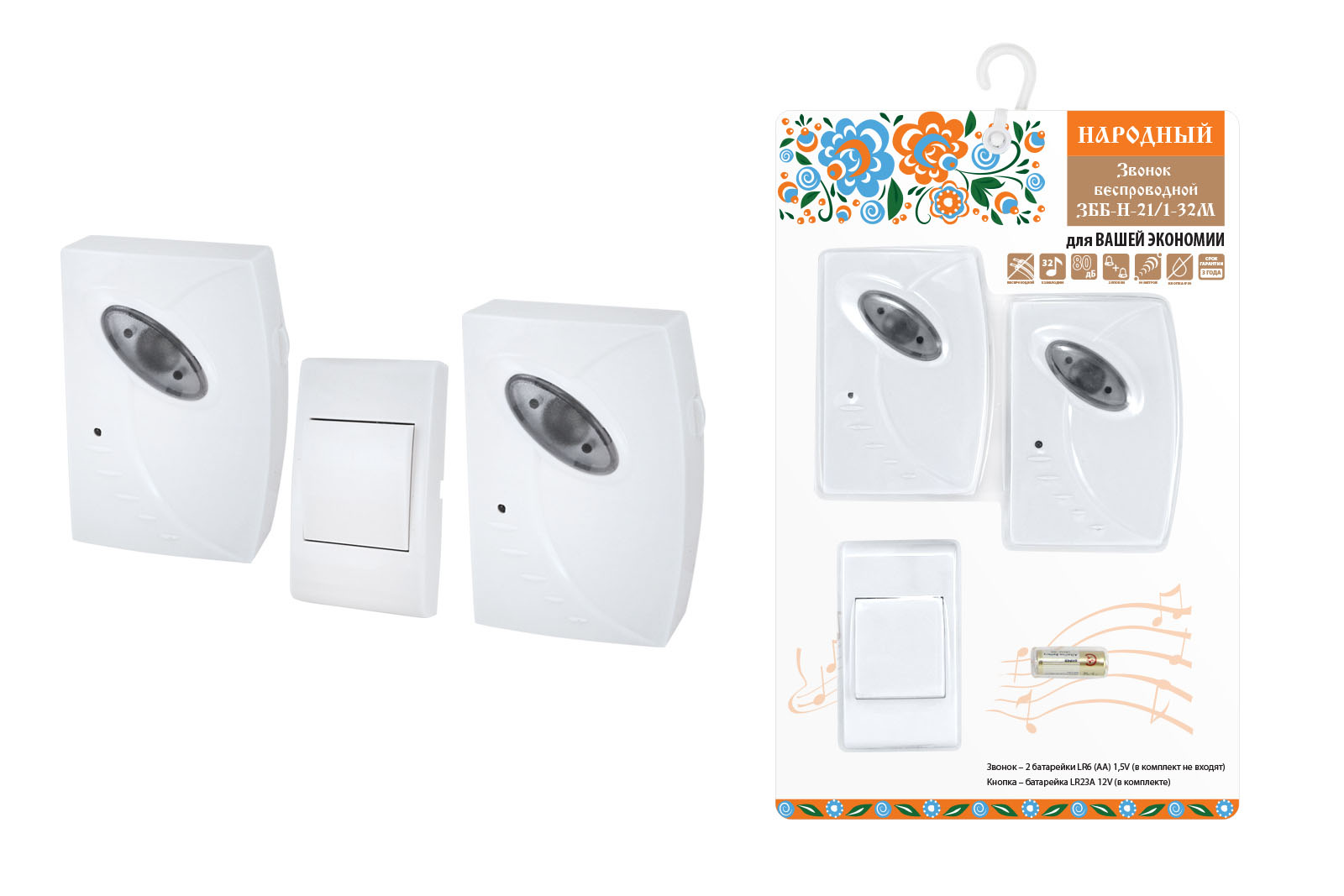 Звонок беспроводной TDM ЗББ-Н-21/1-32М 2xR6 A23 (60)