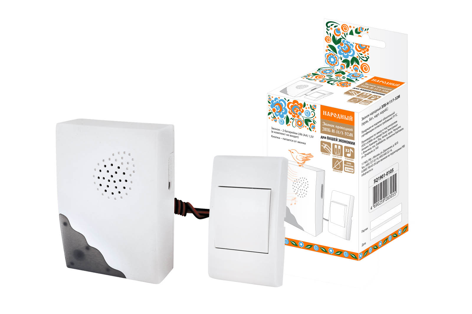 Звонок проводной TDM ЗПБ-Н-11/1-32М 2хR6 (100)