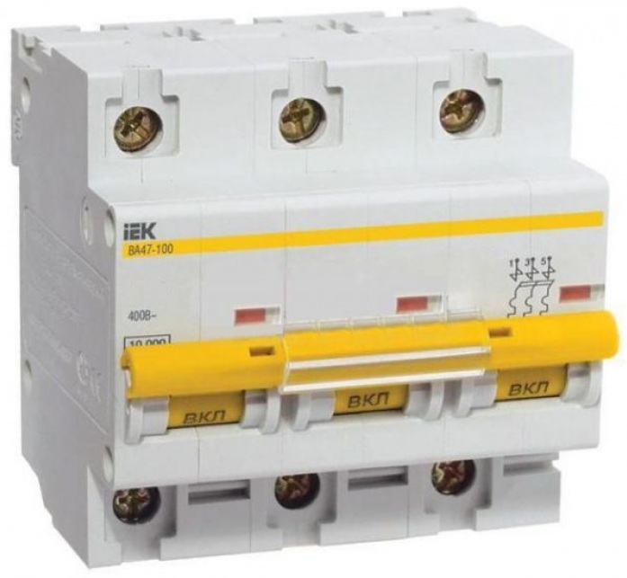 Выключатель автоматический 3P 100A 10kA D IEK BA47-100 (4/40)