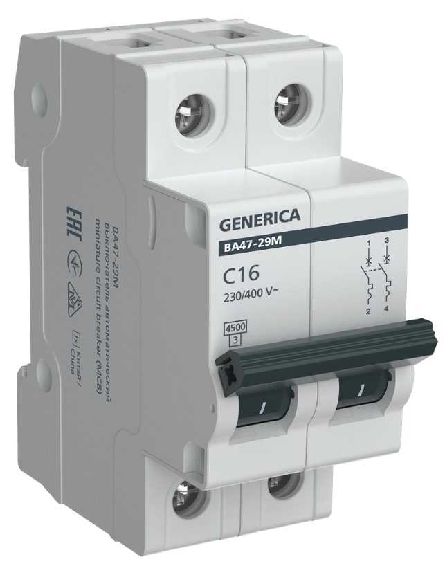 Выключатель автоматический 2P 16A 4,5кА C ВА47-29М Generica (6/72)