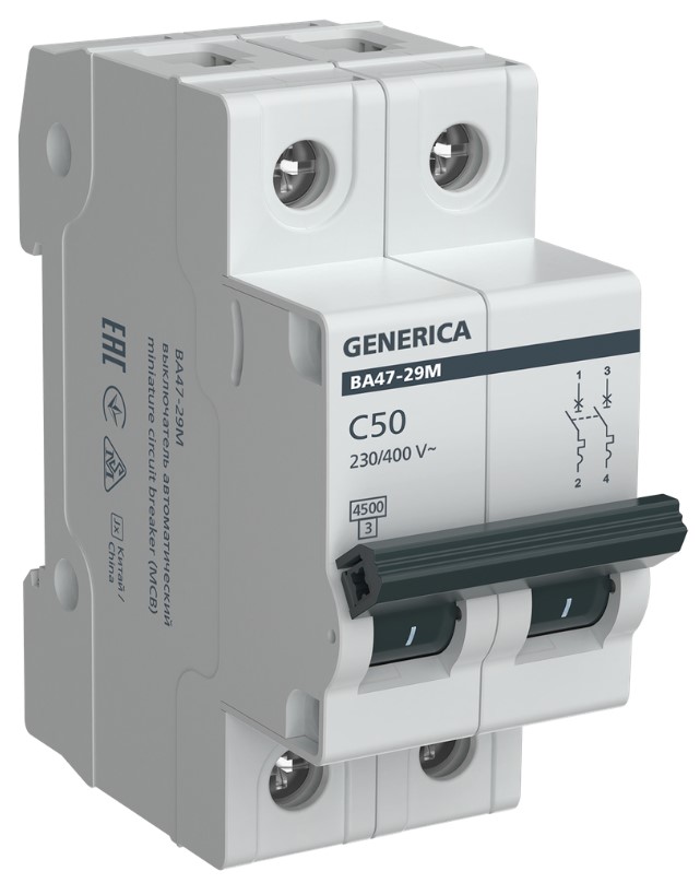 Выключатель автоматический 2P 50A 4,5кА C ВА47-29М Generica (6/72)