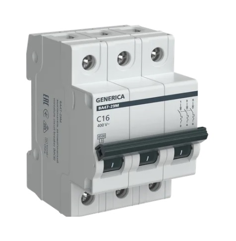 Выключатель автоматический 3P 16A 4,5кА C ВА47-29М Generica (48)