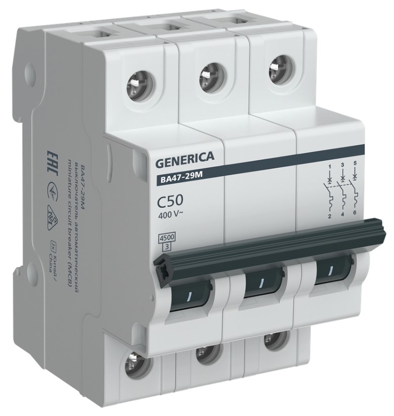 Выключатель автоматический 3P 50A 4,5кА C ВА47-29М Generica (48)