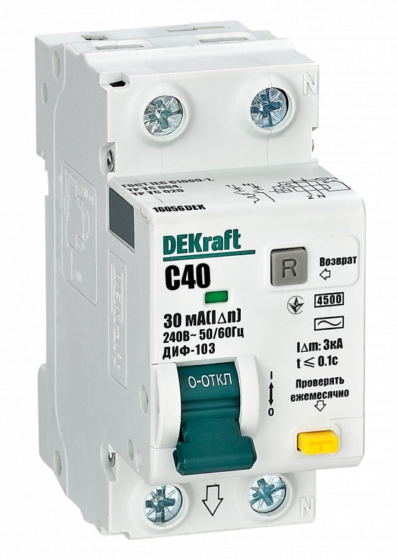 ДИФ 1Р+N 40А 30мА АС 4,5кА С DEKraft ДИФ-103 (6)