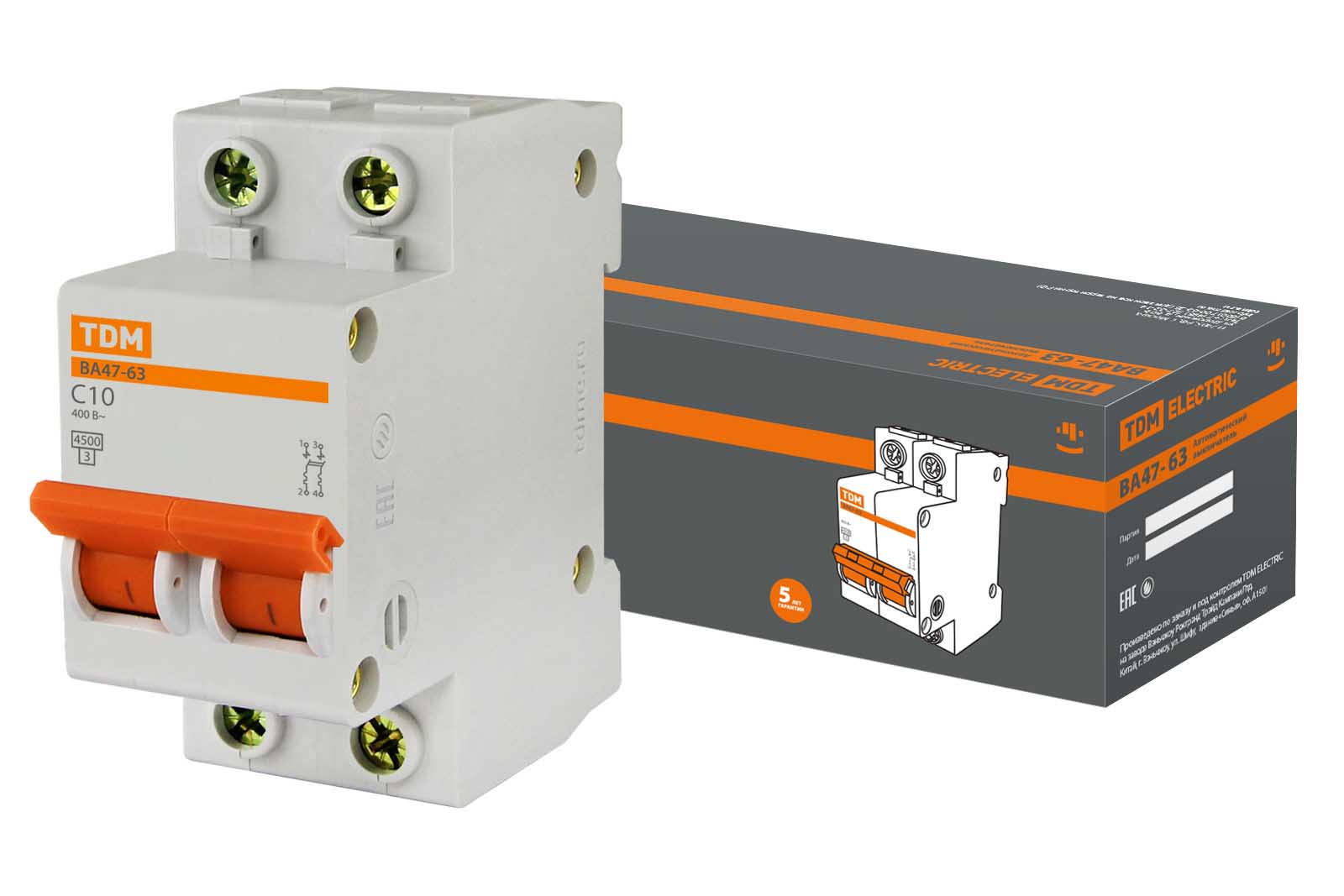 Выключатель автоматический 2P 10A 4,5kA C TDM BA47-63 (6/60)
