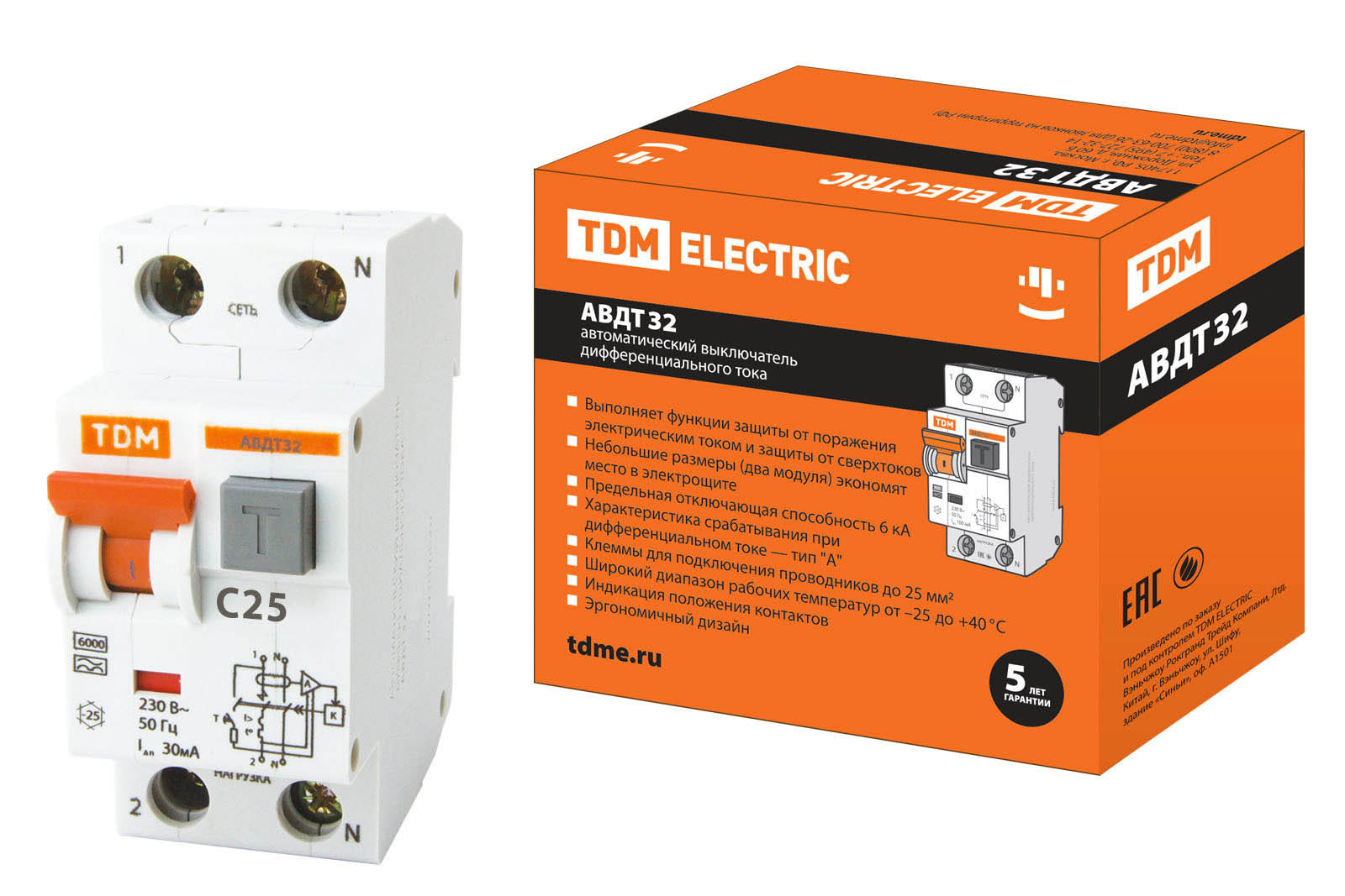 ДИФ 2P 25А 30мА C 6кА TDM АВДТ-32 (6)
