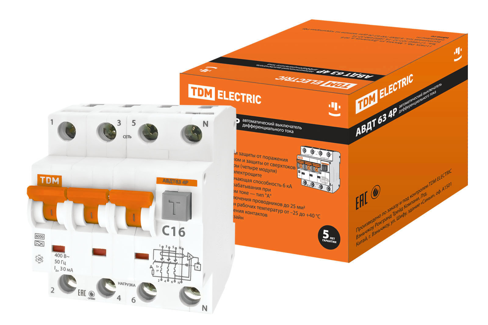 ДИФ 4P 16А 30мА С TDM АВДТ-63 (3)