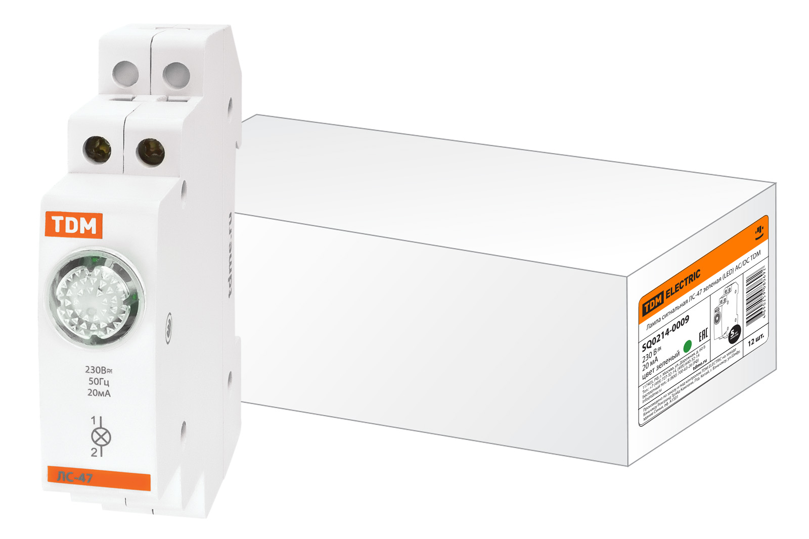 Лампа сигнальная TDM ЛС-47 зеленый 230В LED DIN (12)