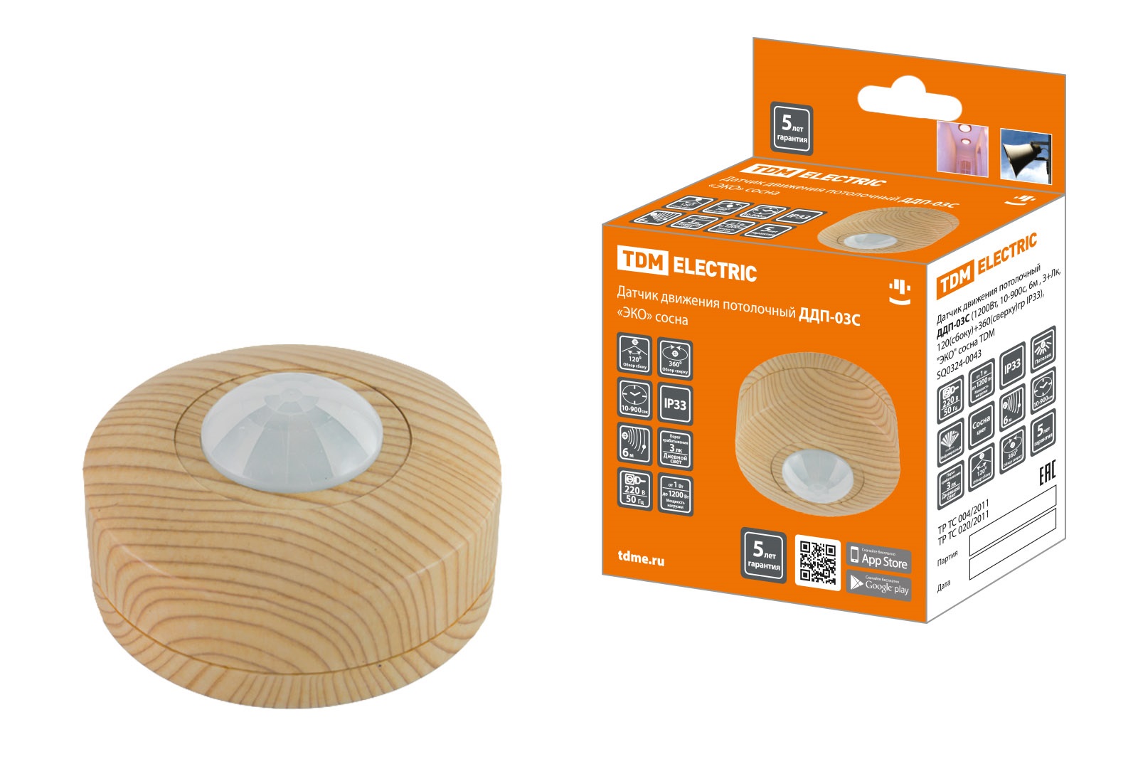 Датчик движения TDM ДДП-03С 1200Вт 360° IP33 6м сосна (50)