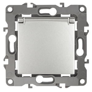 Механизм розетки Эра 12 1-ая с заземлением крышка алюминий (10)