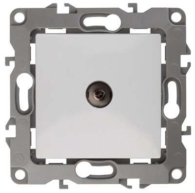 Розетка телевизионная одиночная серии Эра 12 скрытой установки механизм цвет белый 12-3101-01. Сделана из поликарбоната. Монтаж в подрозетник производится и на лапки, и на винты. Рамки приобретаются отдельно. Рамки Эра 12: 1 пост 12-5001-хх, 2 поста 12-5002-хх, 3 поста 12-5003-хх, 4 поста 12-5004-хх, 5 постов 12-5005-хх. Рамки Эра 12 Сатин: 1 пост 12-5101-хх, 2 поста 12-5102-хх, 3 поста 12-5103-хх, 4 поста 12-5104-хх, 5 постов - 12-5105-хх (хх - код цвета: 01-белый, 02-слоновая кость, 03-алюминий, 04-шампань, 05-антрацит, 06-чёрный, 07-ольха(белёный дуб-сатин), 08-вишня, 09-дуб, 10-венге, 11-сосна, 21-жёлтый, 22-оранжевый, 23-красный, 24-охра, 25-бордо, 26-лайм, 27-зелёный, 28-голубой, 29-синий).