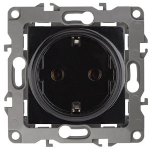 Механизм розетки Эра 12 1-ая с заземлением шторки чёрный (10)