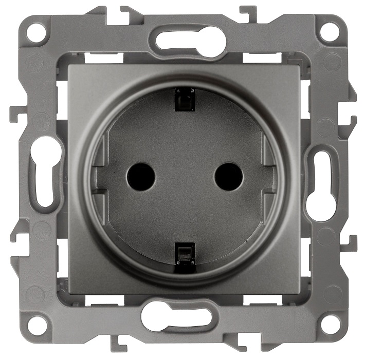 Механизм розетки Эра 12 1-ая с заземлением графит (10)