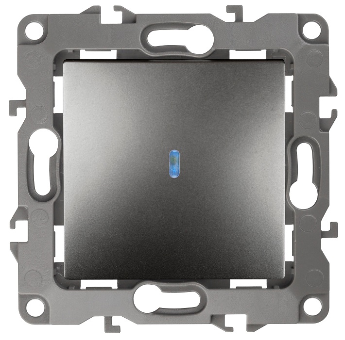 Выключатель 1-клавишный с подсветкой серии Эра 12 скрыт.установки механизм цвет графит 12-1102-12. Номинальные характеристики 10А 250В . Сделан из поликарбоната, оснащёно автоматическими клеммами для быстрй и надёжной фиксации жил кабеля в механиме. Парные клеммы обеспечивают соединение шлейфом. Монтаж в подрозетник производится и на лапки, и на винты. Рамки приобретаются отдельно. Рамки Эра 12: 1 пост 12-5001-хх, 2 поста 12-5002-хх, 3 поста 12-5003-хх, 4 поста 12-5004-хх, 5 постов 12-5005-хх. Рамки Эра 12 Сатин: 1 пост 12-5101-хх, 2 поста 12-5102-хх, 3 поста 12-5103-хх, 4 поста 12-5104-хх, 5 постов - 12-5105-хх (хх - код цвета: 01-белый, 02-слоновая кость, 03-алюминий, 04-шампань, 05-антрацит, 06-чёрный, 07-ольха(белёный дуб-сатин), 08-вишня, 09-дуб, 10-венге, 11-сосна, 21-жёлтый, 22-оранжевый, 23-красный, 24-охра, 25-бордо, 26-лайм, 27-зелёный, 28-голубой, 29-синий).