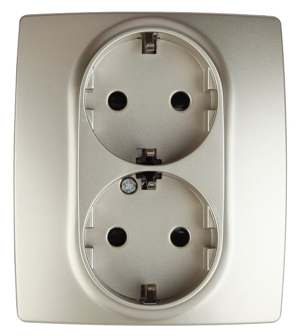 Розетка Эра 12 2-ая с заземлением шторки шампань (6)