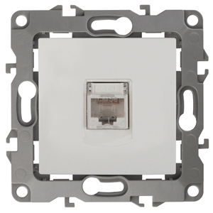 Розетка интернет RJ45 серии Эра 12 скрытой установки механизм цвет слоновая кость 12-3107-02. Сделана из поликарбоната. Монтаж в подрозетник производится и на лапки, и на винты. Рамки приобретаются отдельно.