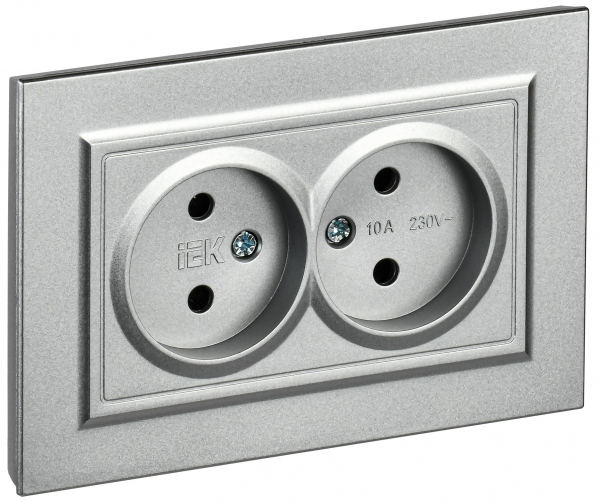 Механизм розетки 2-ая без заземления алюминий IEK Brite