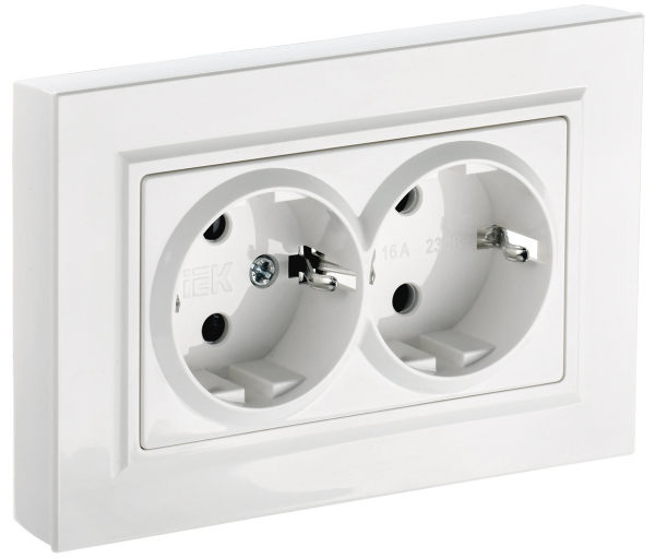 Механизм розетки 2-ая с заземлением белый IEK Brite